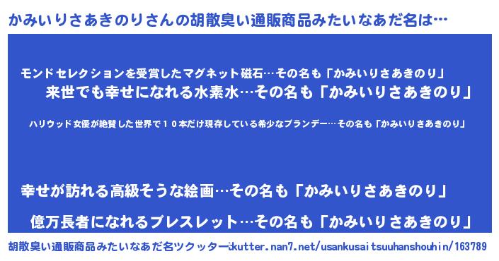 | ヘコむあだ名 | 『かみもー』『かみいりさあきのり(笑)』 |