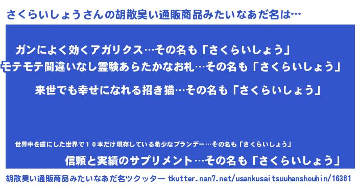 | ヘコむあだ名 | 『さくらいしょう(小並感)』『さくっ子』 |