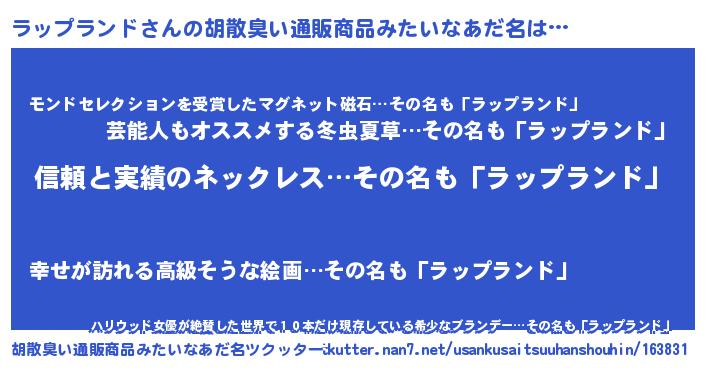 | 意味不明あだ名 | 『とにかく怪しいラップランド』 |