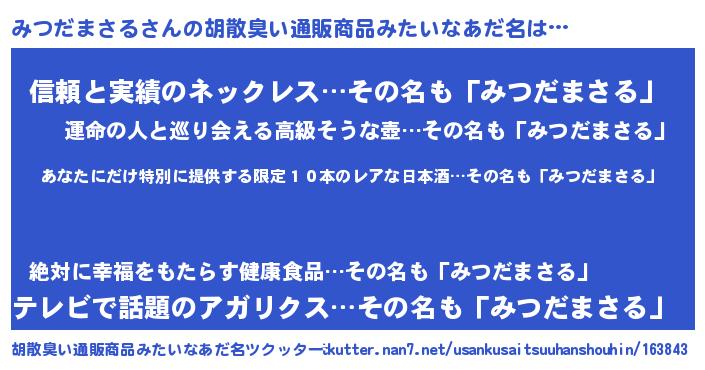 みつだまさるさんの胡散臭い通販商品みたいなあだ名をツクッター!