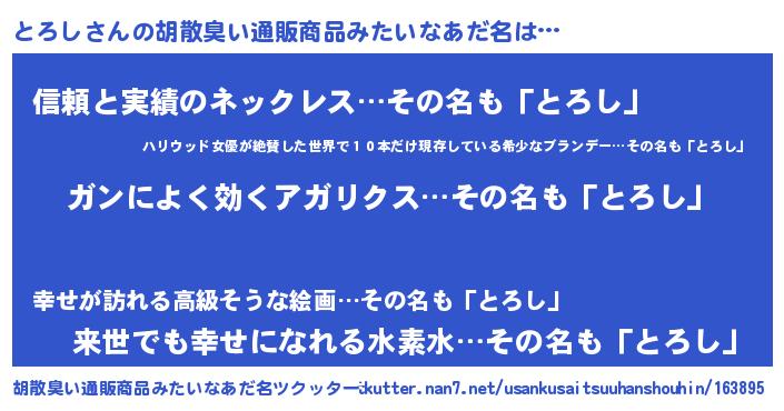| ヒーロー風カッコイイあだ名 | 『超時空戦士トロシ』『黄金騎士トロ』 |