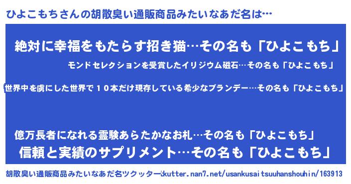 | ヘコむあだ名 | 『ひよこもち(遠い目)』『ひよを』 |