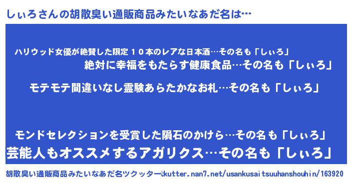 | 意味不明あだ名 | 『ペロリンしぃろ』『もやし科しぃろ属』 |