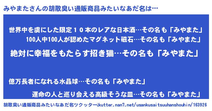 | 意味不明あだ名 | 『永久保存みやまた』 |