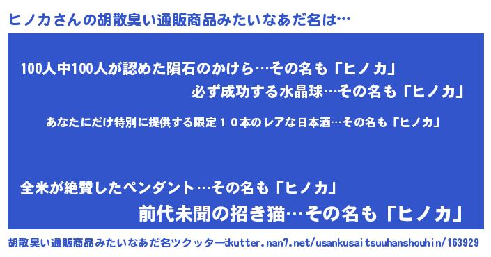 ヒノカさんの胡散臭い通販商品みたいなあだ名をツクッター!