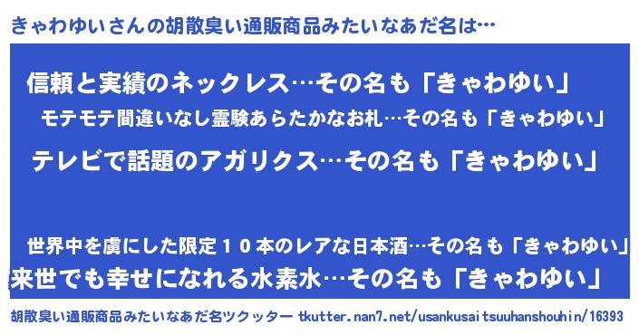 | 意味不明あだ名 | 『自称きゃわゆい』『永久保存きゃわゆい』 |