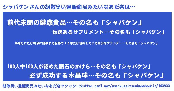 | 意味不明あだ名 | 『住所不定無職シャバケン(77歳)』 |