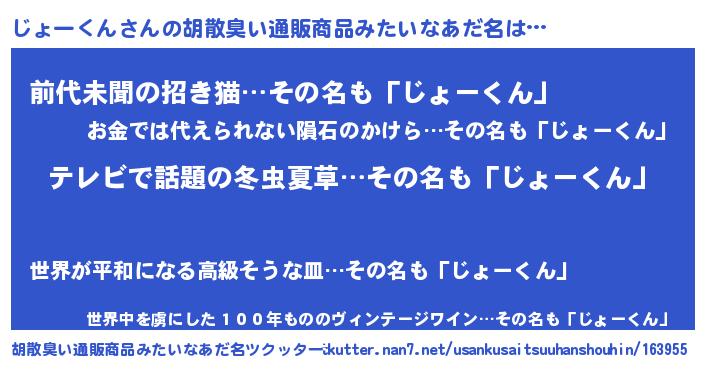 | 意味不明あだ名 | 『自称じょーくん』『永久保存じょーくん』 |