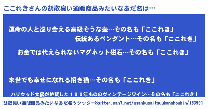 ここれきさんの胡散臭い通販商品みたいなあだ名をツクッター!