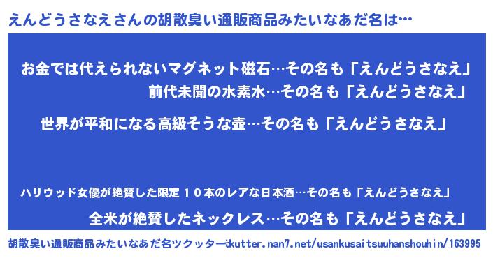 | 欧米人風あだ名 | 『トリンドルえんどうさなえ』 |