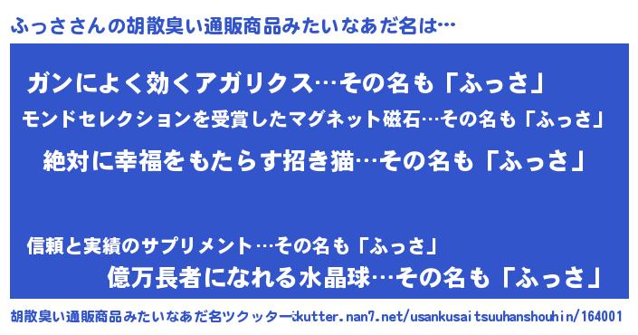 ふっささんの胡散臭い通販商品みたいなあだ名をツクッター!