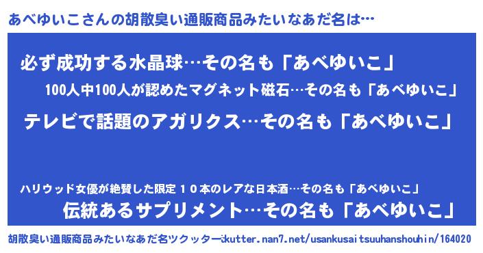 | 男性向けラノベタイトル風あだ名 | 『魔法科高校のあべゆいこ』 |