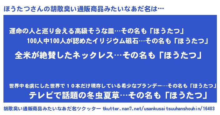 | 意味不明あだ名 | 『とにかく怪しいほうたつ』 |