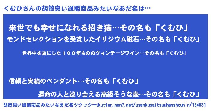 | ヘコむあだ名 | 『くむひ(笑)』『なまこ酢』 |