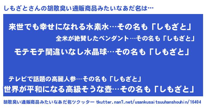 | ヘコむあだ名 | 『しもにゅー』『しもざと(震え声)』 |