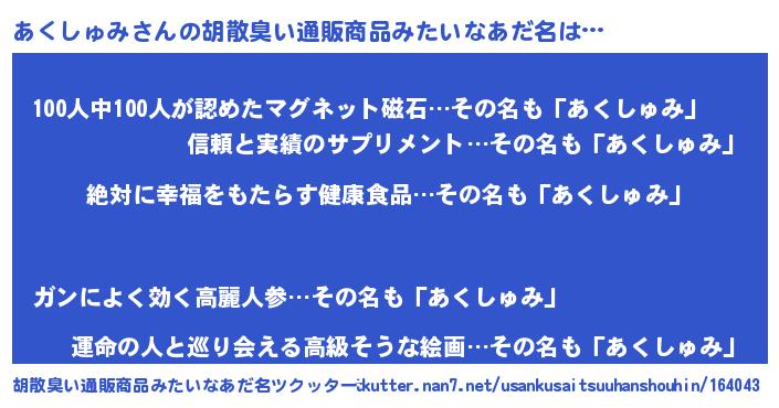 あくしゅみさんの胡散臭い通販商品みたいなあだ名をツクッター!