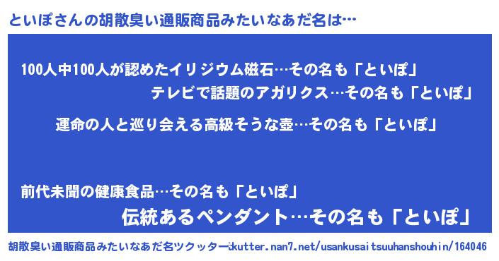 | 意味不明あだ名 | 『といぽフォーエバー』『自称といぽ』 |