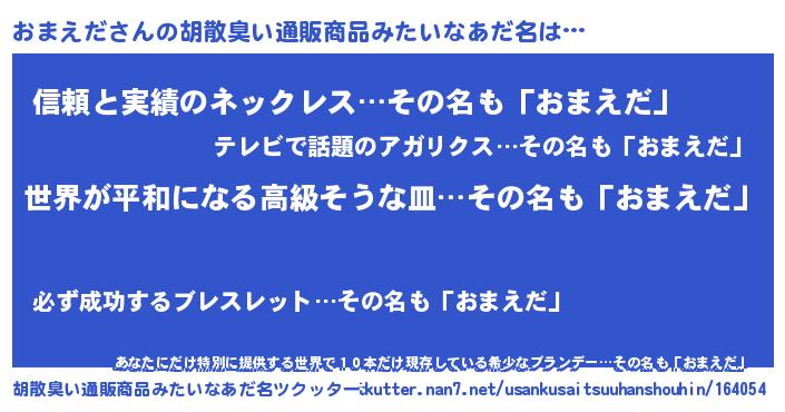 | 意味不明あだ名 | 『おまえだフォーエバー』『自称おまえだ』 |