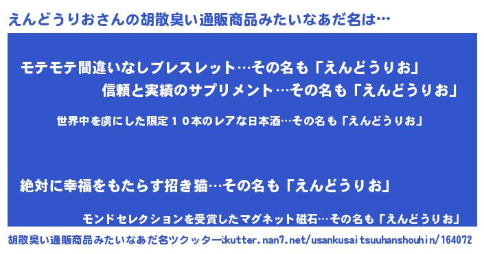 | 男性向けラノベタイトル風あだ名 | 『この素晴らしい世界にえんどうりおを!』 |