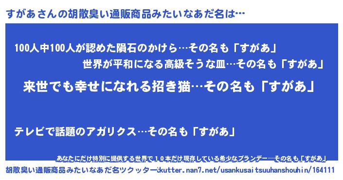 | ヘコむあだ名 | 『すがあ(笑)』『レバニラ』 |