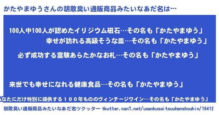 | ヒーロー風カッコイイあだ名 | 『スーパーカタヤマユウ』『仮面カタダー』 |