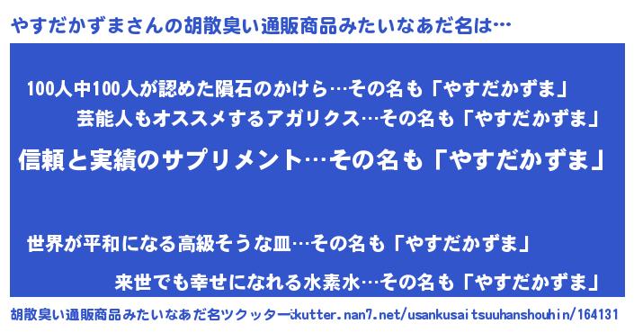 | 意味不明あだ名 | 『とにかく怪しいやすだかずま』 |