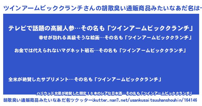 | 男性向けラノベタイトル風あだ名 | 『ノーゲーム・ノーツインアームビッククランチ』 |