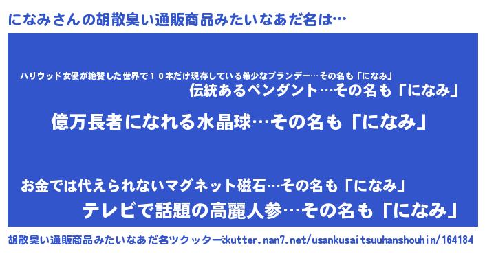| ヒーロー風カッコイイあだ名 | 『スーパーニナミ』『仮面ニナダー』 |