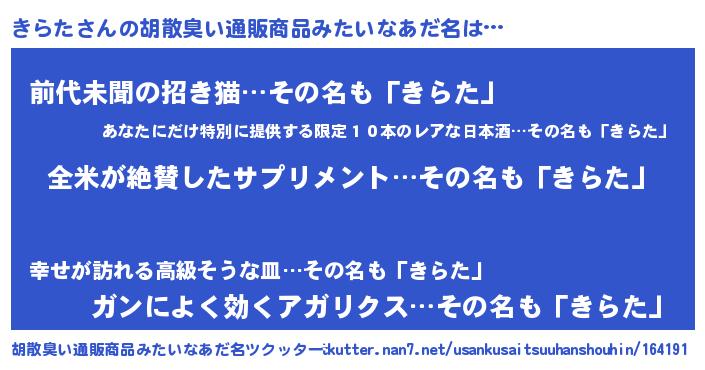 | 意味不明あだ名 | 『つくし科きらた属』『永久保存きらた』 |