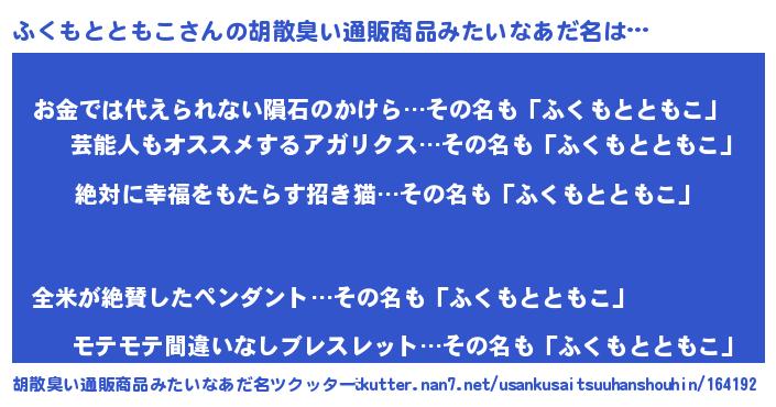 | 意味不明あだ名 | 『永久保存ふくもとともこ』 |