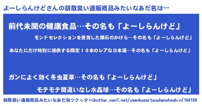 | ヘコむあだ名 | 『よーしらんけど(笑)』『よーもー』 |