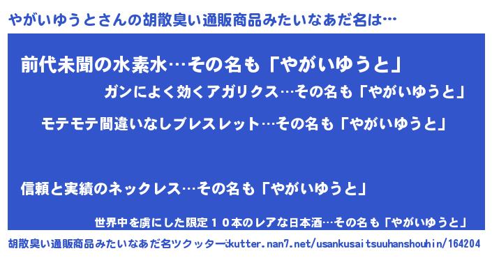 | 欧米人風あだ名 | 『アンジェラ・やがいゆうと』 |