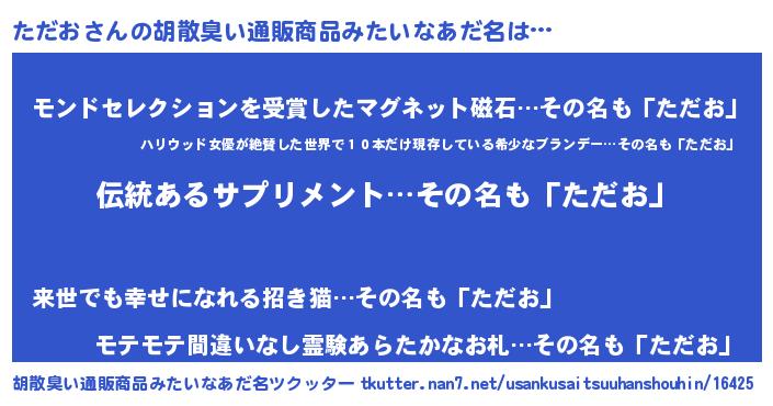 | ヘコむあだ名 | 『ただを』『ただふぇ~』『レバニラ』 |