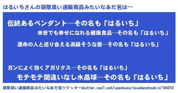 | 意味不明あだ名 | 『はるいちフォーエバー』 |