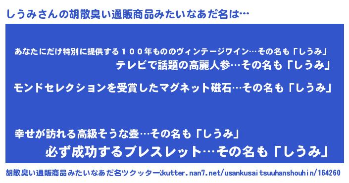 | 欧米人風あだ名 | 『ダニエルしうみ』『ダレノガレしうみ』 |