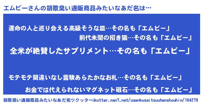 | 意味不明あだ名 | 『とにかく怪しいエムビー』 |