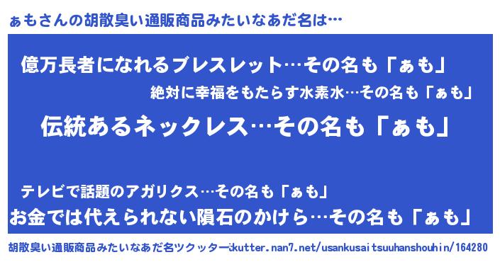 | 意味不明あだ名 | 『とにかく怪しいぁも』『ペロリンぁも』 |