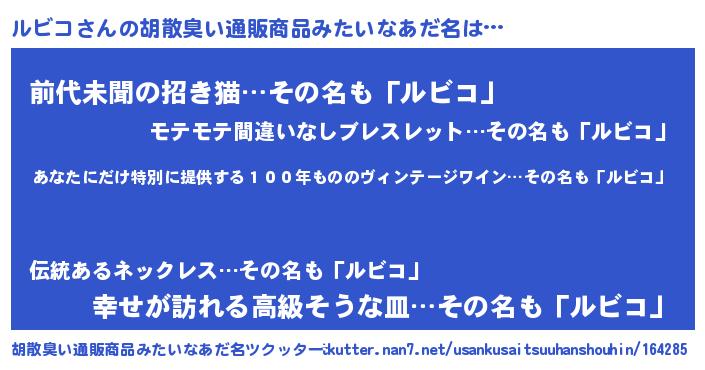 | 意味不明あだ名 | 『住所不定無職ルビコ(5歳)』 |