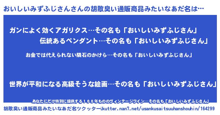 | ヒーロー風カッコイイあだ名 | 『愛の使者おいしいみずふじさん』 |