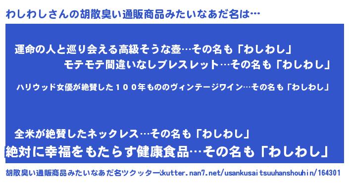 | ヒーロー風カッコイイあだ名 | 『仮面ワシダー』『ウルトラわしわしマン』 |