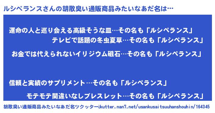 | 女子向けラノベタイトル風あだ名 | 『ルシペランス恋絵巻』 |
