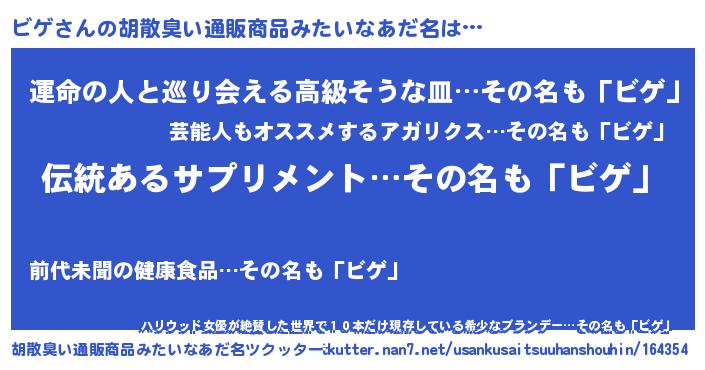 | ヘコむあだ名 | 『ビゲお』『なまこ酢』『ビゲ(笑)』 |