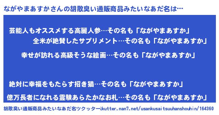 | 肩書あだ名 | 『ながやまあすか総理大臣』 |