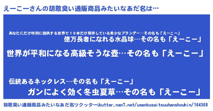 | 意味不明あだ名 | 『もやし科えーこー属』『自称えーこー』 |
