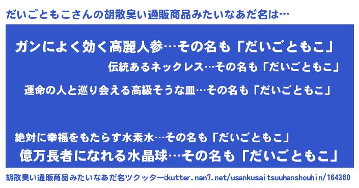 | 意味不明あだ名 | 『だいごともこフォーエバー』 |