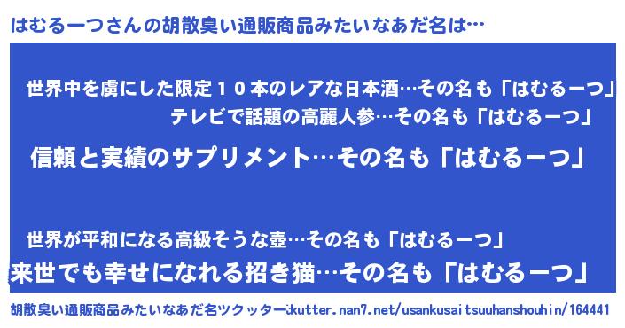 | 意味不明あだ名 | 『とにかく怪しいはむるーつ』 |