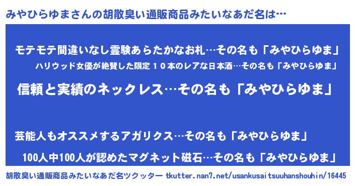 | 意味不明あだ名 | 『とにかく怪しいみやひらゆま』 |