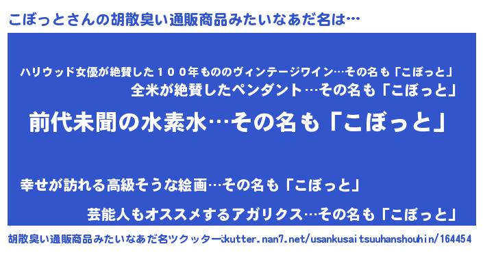 | 意味不明あだ名 | 『永久保存こぼっと』『自称こぼっと』 |