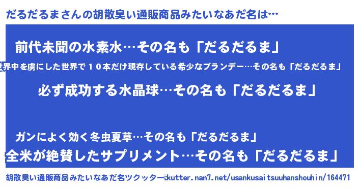 | ヘコむあだ名 | 『だるにゅー』『だるだるま(遠い目)』 |