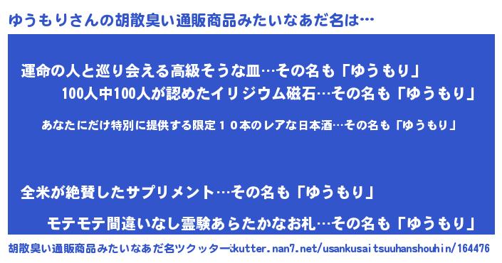 | 意味不明あだ名 | 『住所不定無職ゆうもり(53歳)』 |